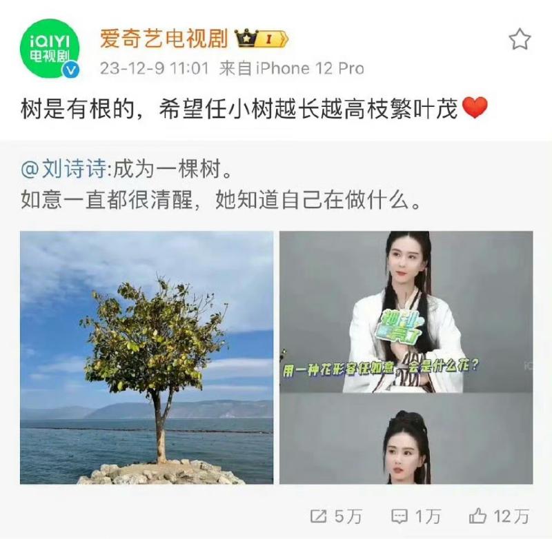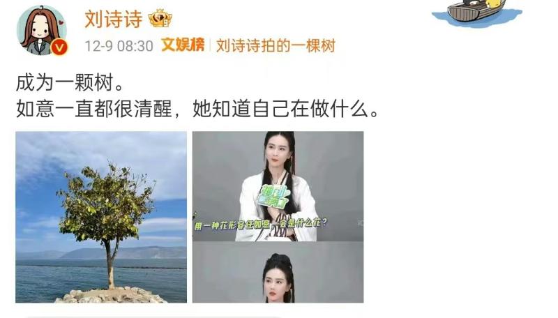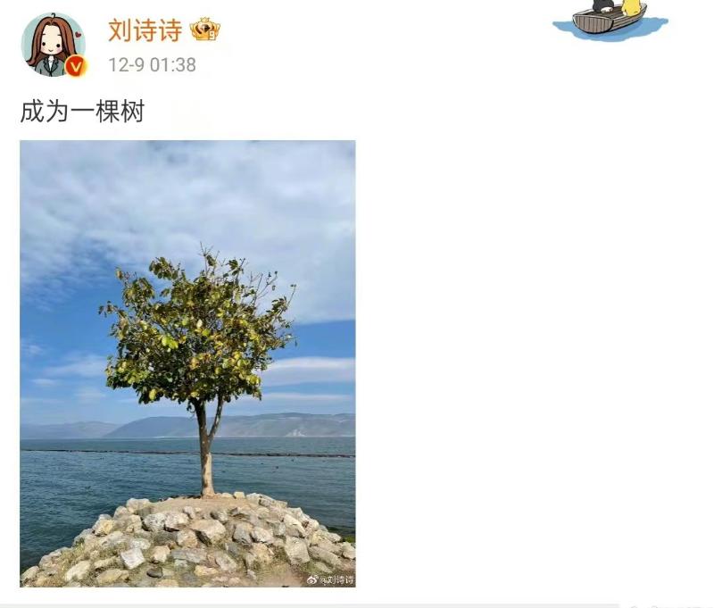 隨著熱議,劉詩詩在凌晨發文疑似回應,發了一棵樹,配文:「成為一棵樹」👇