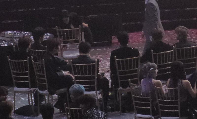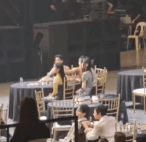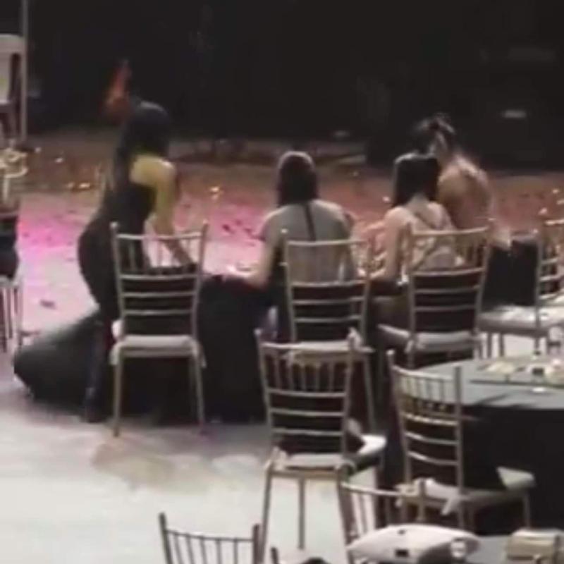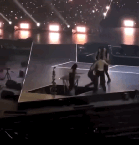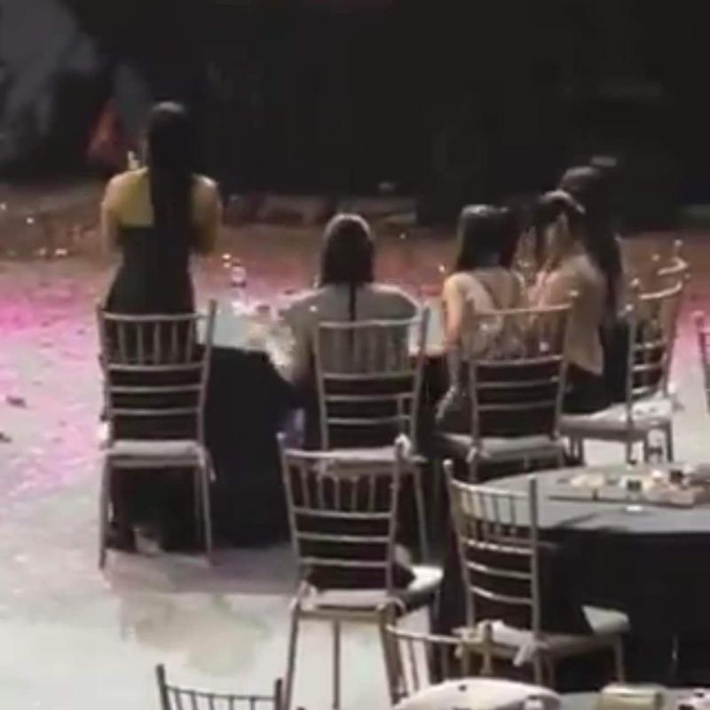 桌子怎麼回事呢?看起來就是AAA祖傳的造型沒錯啊,尤其那個“婚禮凳”,簡直不要太熟悉!BUT,今年的桌子質量真的…太危險了!你看,The Boyz成員輕輕一壓,桌子就快翻桌了👇