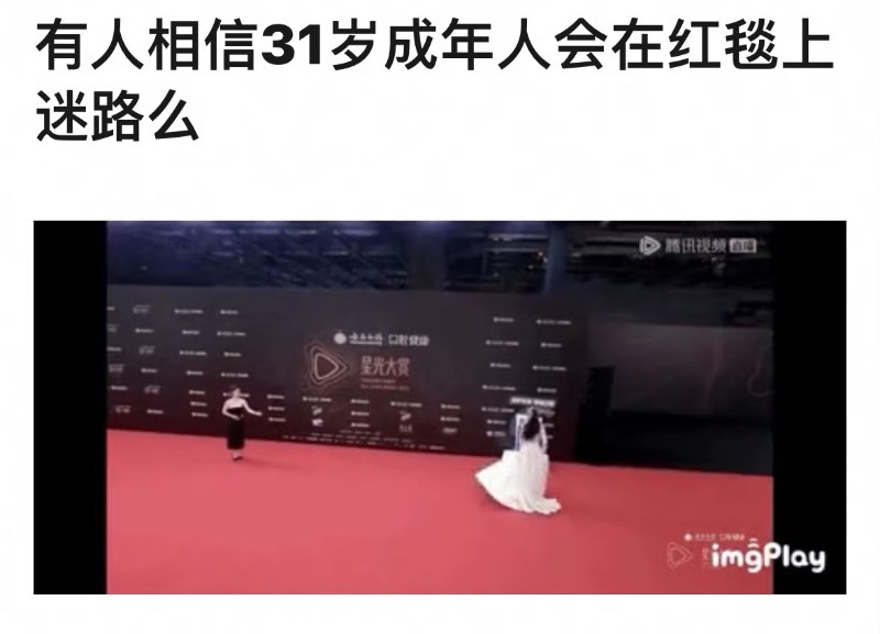 於是…在「迪麗熱巴 紅毯迷路」爆了熱搜之後,有網友發帖吐槽:「有人相信31歲成年人會在紅毯上迷路麼?」