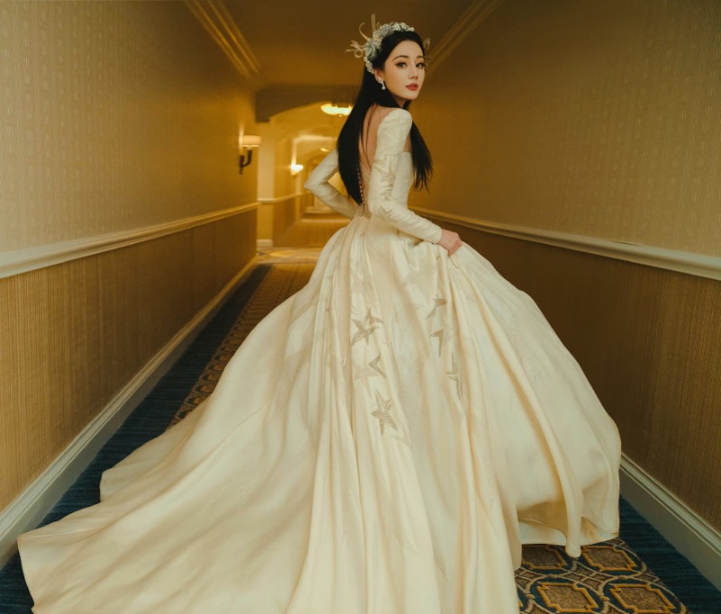 而迪麗熱巴同樣選擇走中間,一登場就吸引了不少目光👇