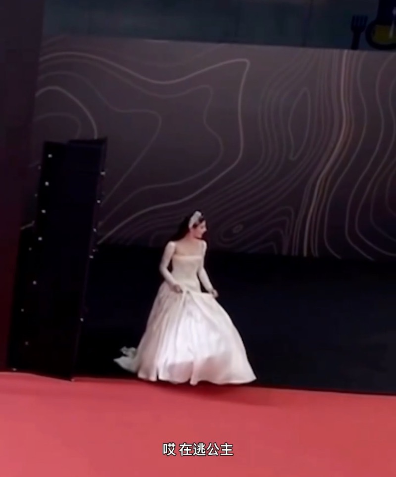 但沒想到眼看就要走到主持人那裡了,熱巴突然像迷路一樣…直接往主背景後面走去了,急得主持人喊她「在逃公主!」