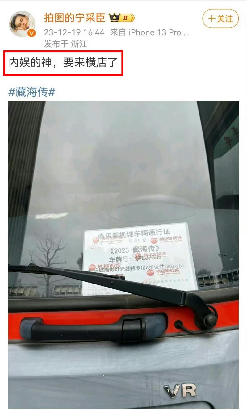 另外,19號這天,也有橫店代拍拍到了《藏海傳》的道具車,配文;「內娛的神,要來橫店了」