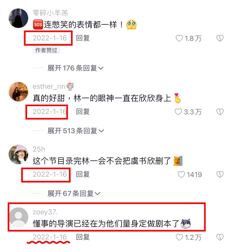 就是說,虞書欣和林一在2022年就玩得很歡,當時也有不少網友在線嗑這一對「欣林感應」👇