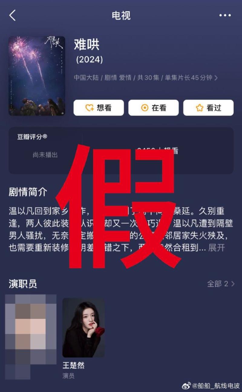 而《難哄》果然也是「世界名著」,從確定影視化開始,就溜了不少藝人,當中女主呼聲最高的王楚然,已經正式闢謠會出演👇