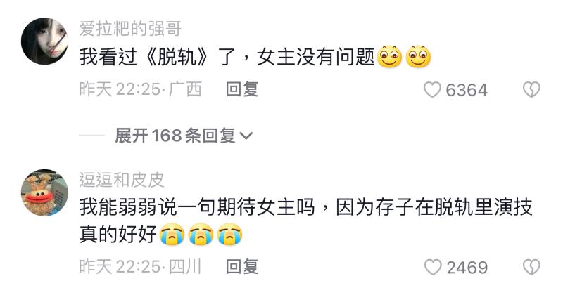 但,隨著劉浩存的《脫軌》播出之後,不少網友反而對她出演十分期待👇