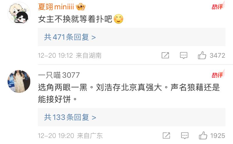 對於劉浩存出演女主,網友有不同的看法,一派認為不換就等著撲👇