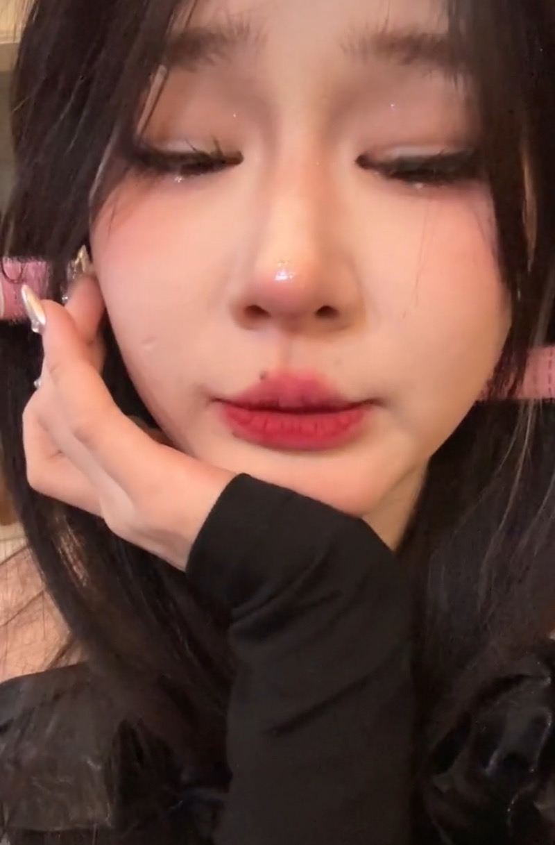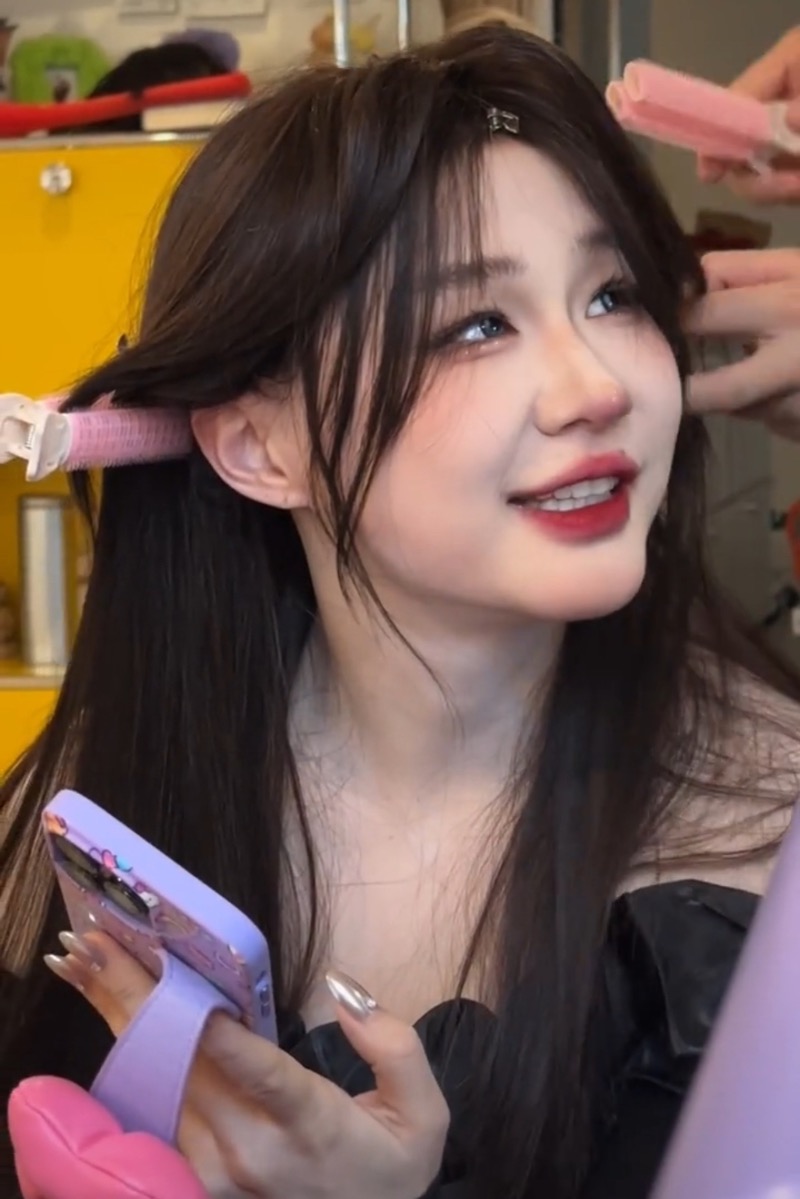 接著化妝師陸續幫她畫上臥蠶,讓她雙眼看起來更大👇