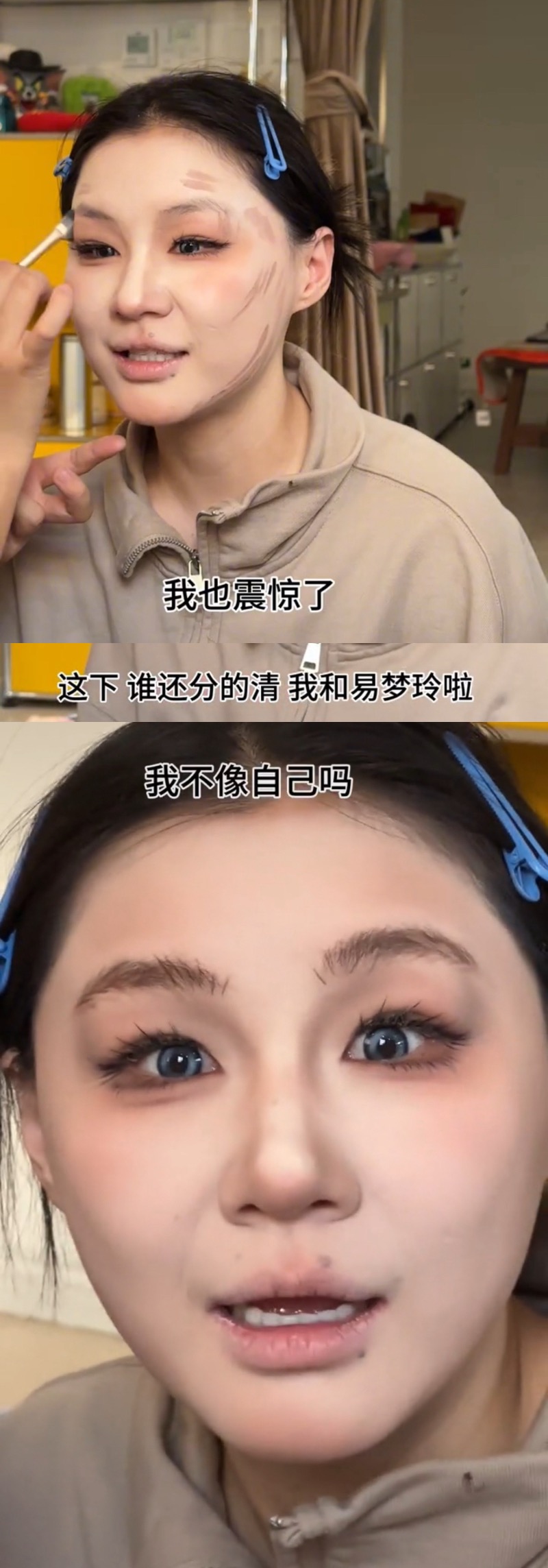 這裡也可以看看爆改楊迪妝容的效果,的確也很有“笑果”👇