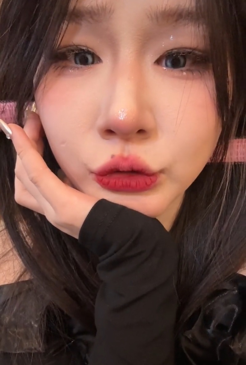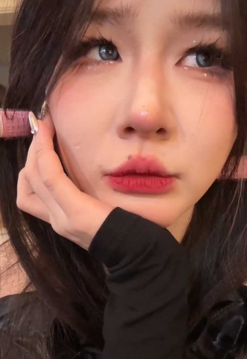 接著化妝師陸續幫她畫上臥蠶,讓她雙眼看起來更大👇