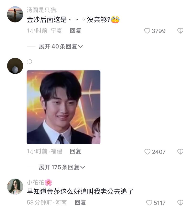 結果我們金莎姐直接女友力爆發,拉了小男友就吻了!