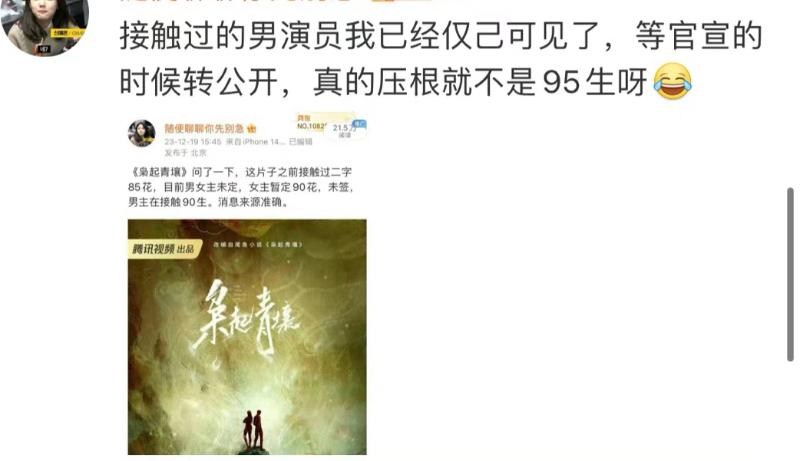 但這時有瓜主爆料,表示這部劇的男主,從一開始就沒有傳到過95生身上,為什麼會需要王鶴棣的粉絲對接出來闢謠?這句話讓迪麗熱巴粉絲認為是王鶴棣家在自導自演,準備蹭熱巴熱度~