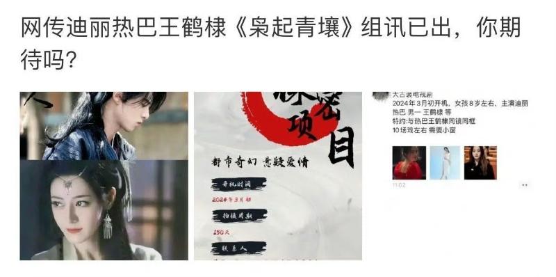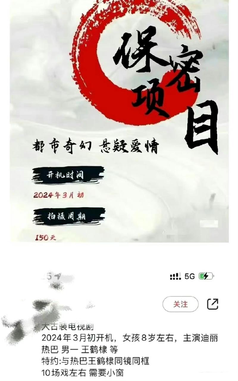 這部劇的女主一直都傳是熱巴,但女主方從未官宣,而王鶴棣則是第一次被傳將和熱巴合作👇