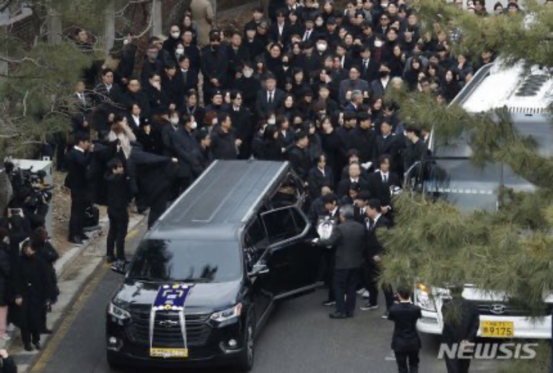 靈車從葬禮現場出發,前往水原市的火葬場火化,骨灰將安葬於京畿道三星開發公園墓園。
