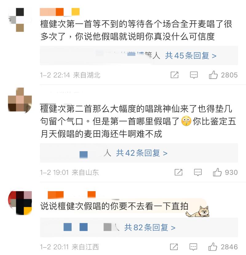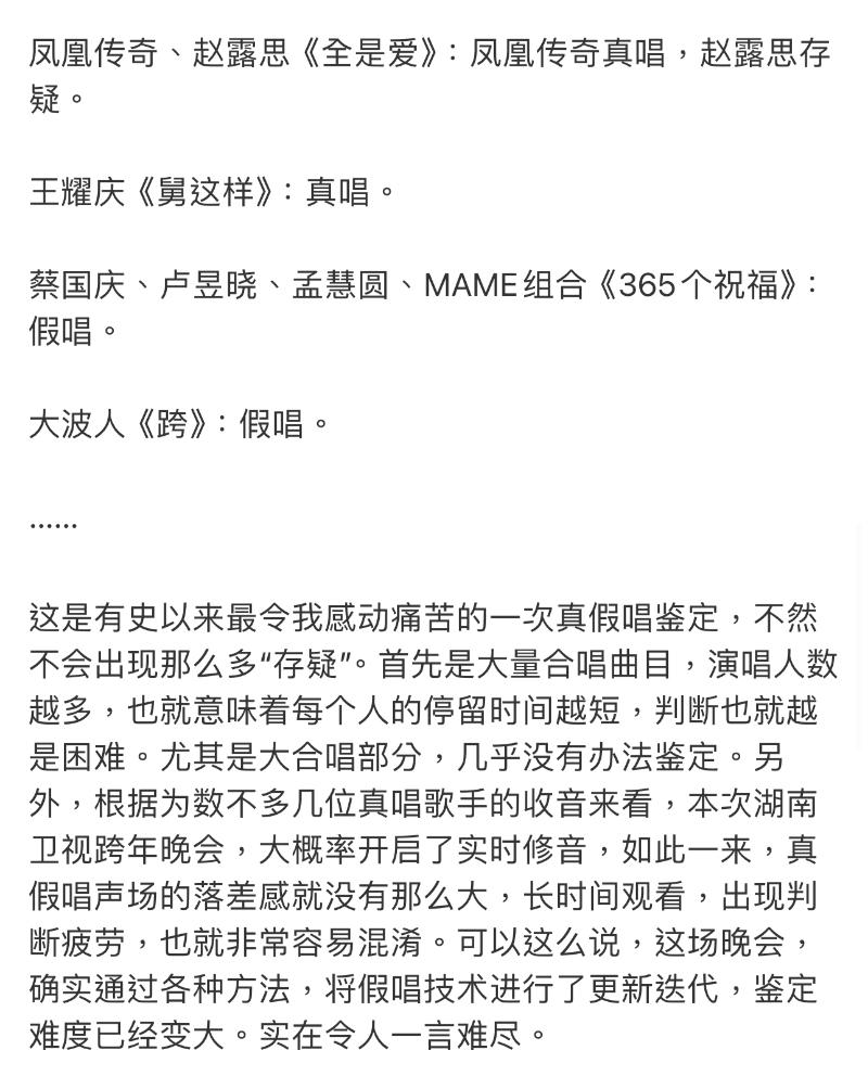 至於陣容最大的湖南衛視,則用了超長篇幅,這麼看下來,似乎80%都是在假唱?甚至包括了韓紅?