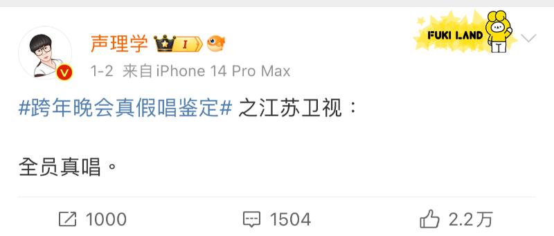 先來看看,該博主表示江蘇衛視「全員真唱」!