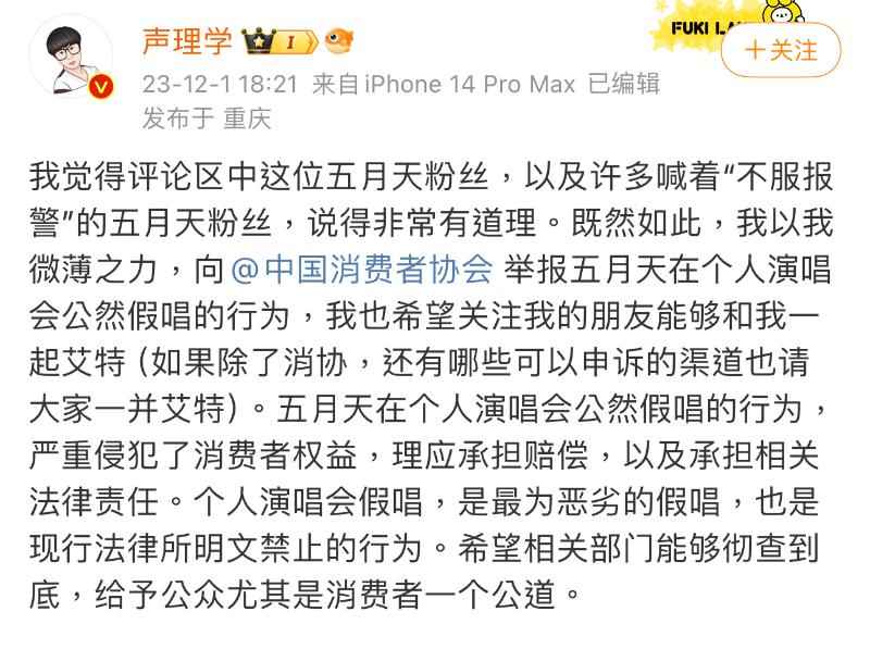 就是說,12月初五月天陷入了假唱爭議,而當中最初指控五月天假唱的博主,似乎對評論真假唱越來越有興趣,這次還做了有關跨年夜晚會的真假唱鑒定!