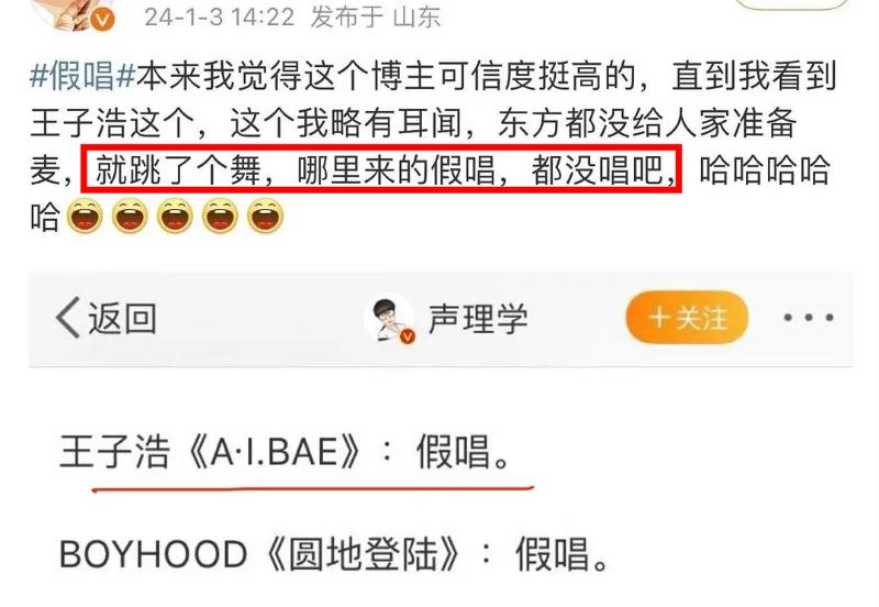 雖然但是,隨後該博主繼續評論其他衛視,結果沒想到在評論東方衛視時,居然讓人見識到了他的“專業性”?是噠,這位博主批張藝興旗下藝人王子浩,也是假唱!