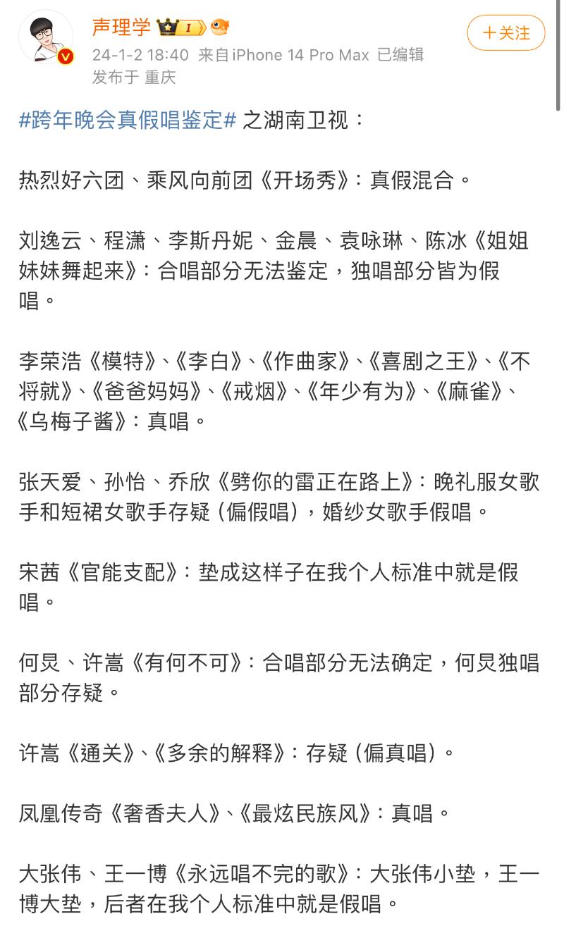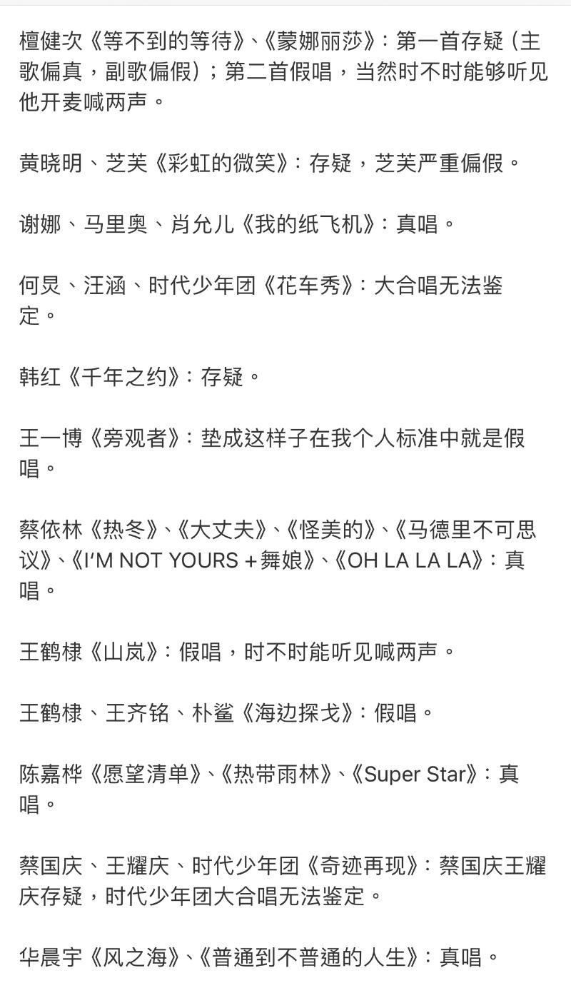 至於陣容最大的湖南衛視,則用了超長篇幅,這麼看下來,似乎80%都是在假唱?甚至包括了韓紅?