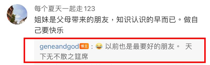 網友評價:「姐妹是父母帶來的朋友」,孫燕美回應:「以前也是最要好的朋友。天下無不散之筵席」