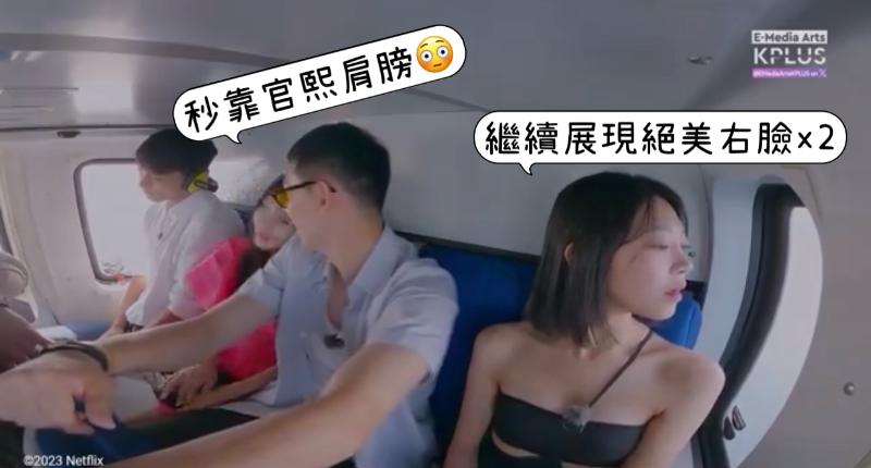 但下一句官熙又建議旻志可以靠在海警哥肩膀休息一下,沒想到…旻志下一秒就靠在官熙身上…是噠,這個過程中,我們的原配慧善全程展示了頑強的毅力,硬是沒扭過頭看一眼!同樣的,海警哥也同樣繼續守著自己該有位置(?)🤣