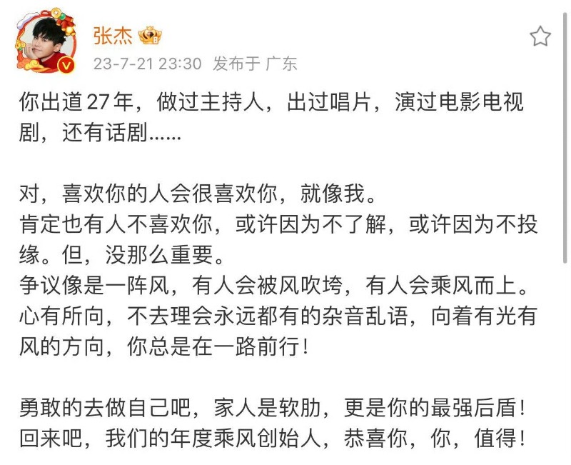 隨後,張杰在微博寫了一封信給謝娜,全文如下👇
