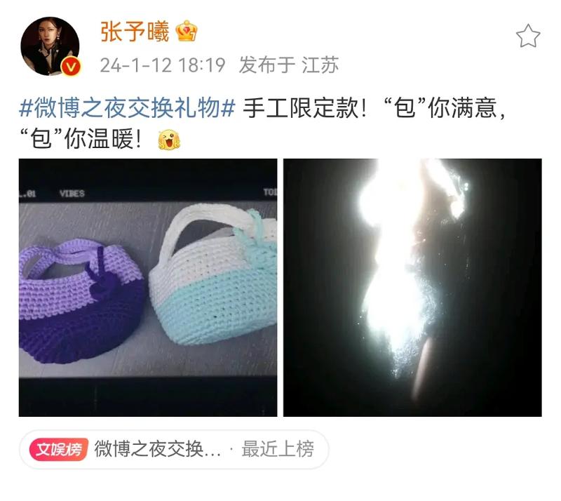 陸續已經有藝人公開自己準備的禮物,包括了張予曦的手工包👇