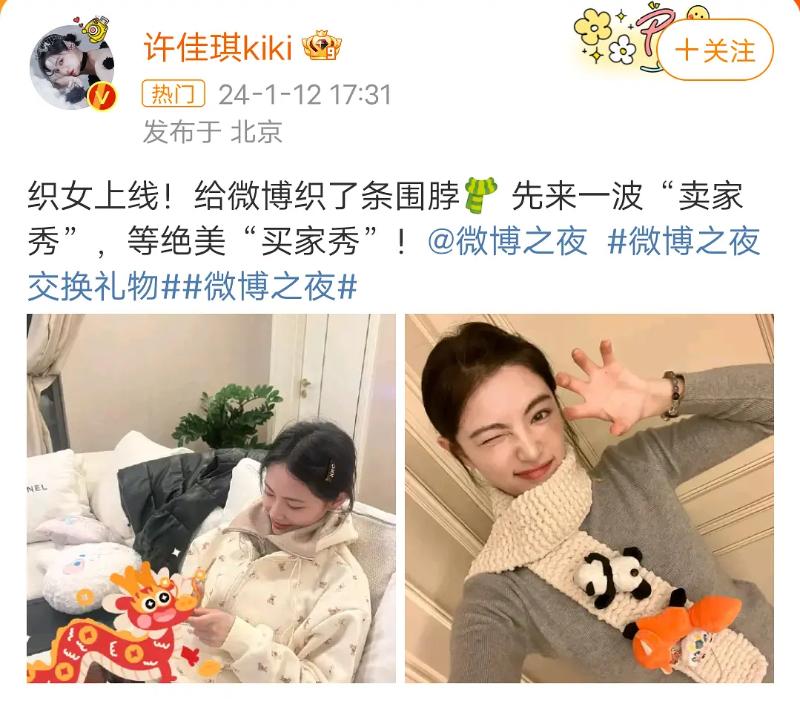 許佳琪自己織了圍脖👇