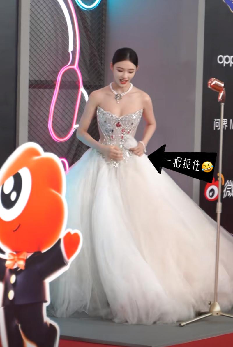 林允一發現裙子崩開,立刻手動幫忙“收口”,一把捉住的樣子太尷尬了!問題是,下一秒就輪到她登場了!