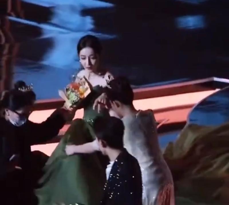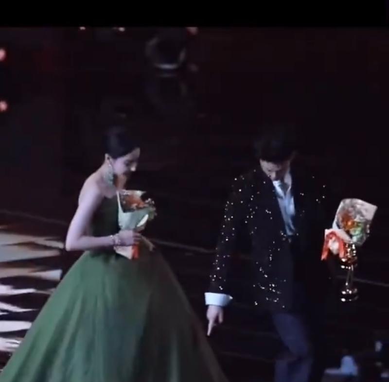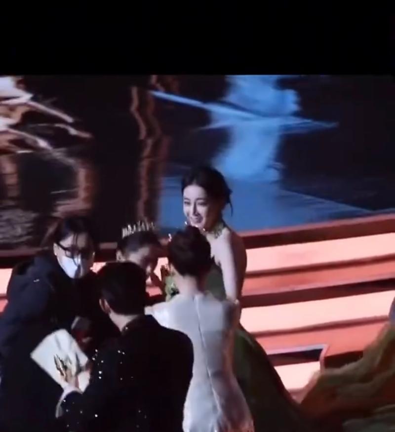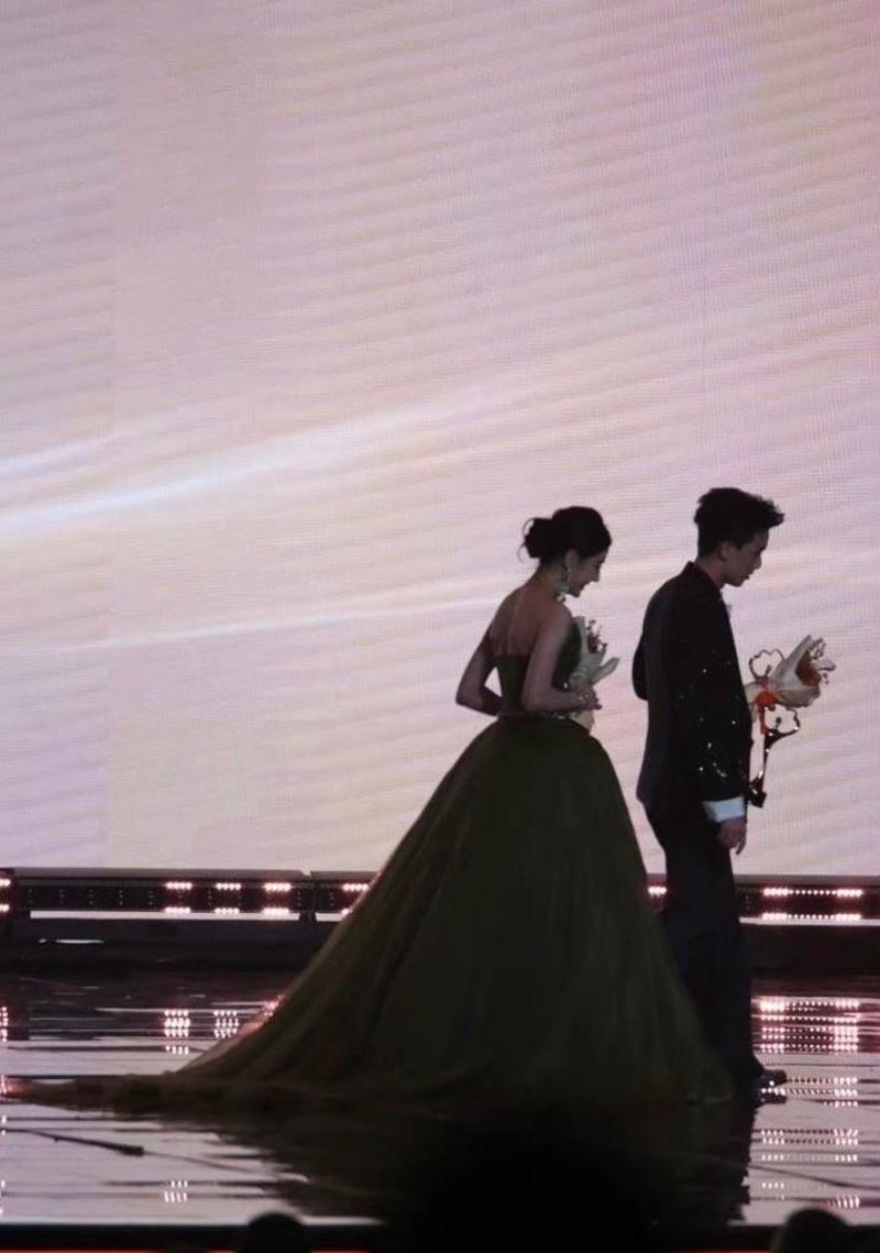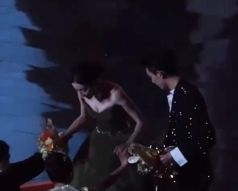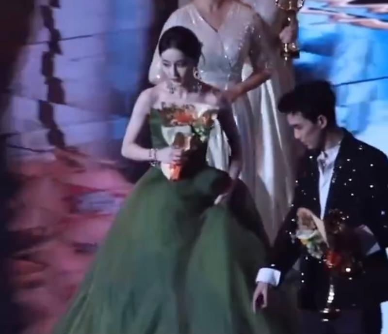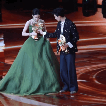 領完獎之後,紳士的三石弟弟立刻幫忙領過熱巴的獎杯,好讓她可以挽起大裙擺👇