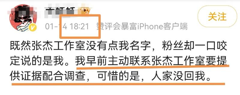 但這位博主再發文,表示自己聯繫了張杰工作室,但並沒有得到回應。