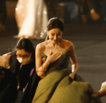 而兩人在內場走路的反應,也立刻被拿來對比!先來看看,領完獎就忙著趕飛機的熱巴,邊跑邊做起了她之前不斷被熱議的動作,就是捂胸口~