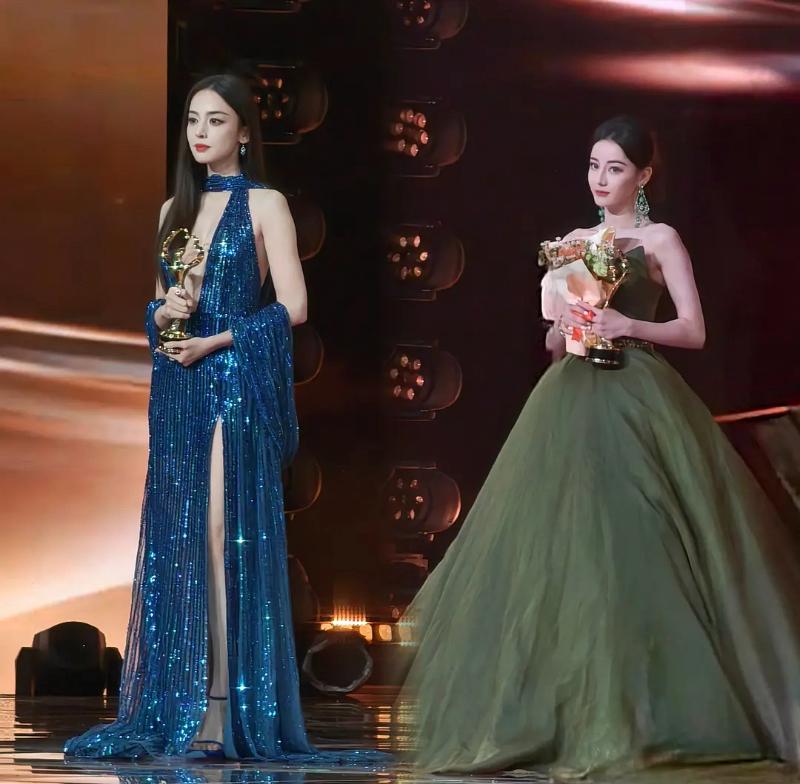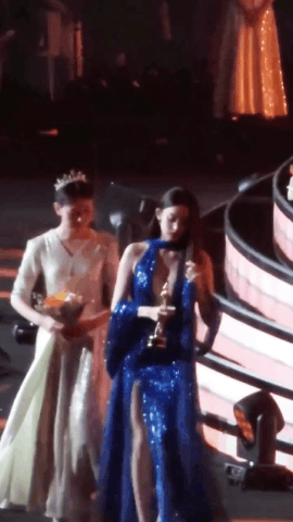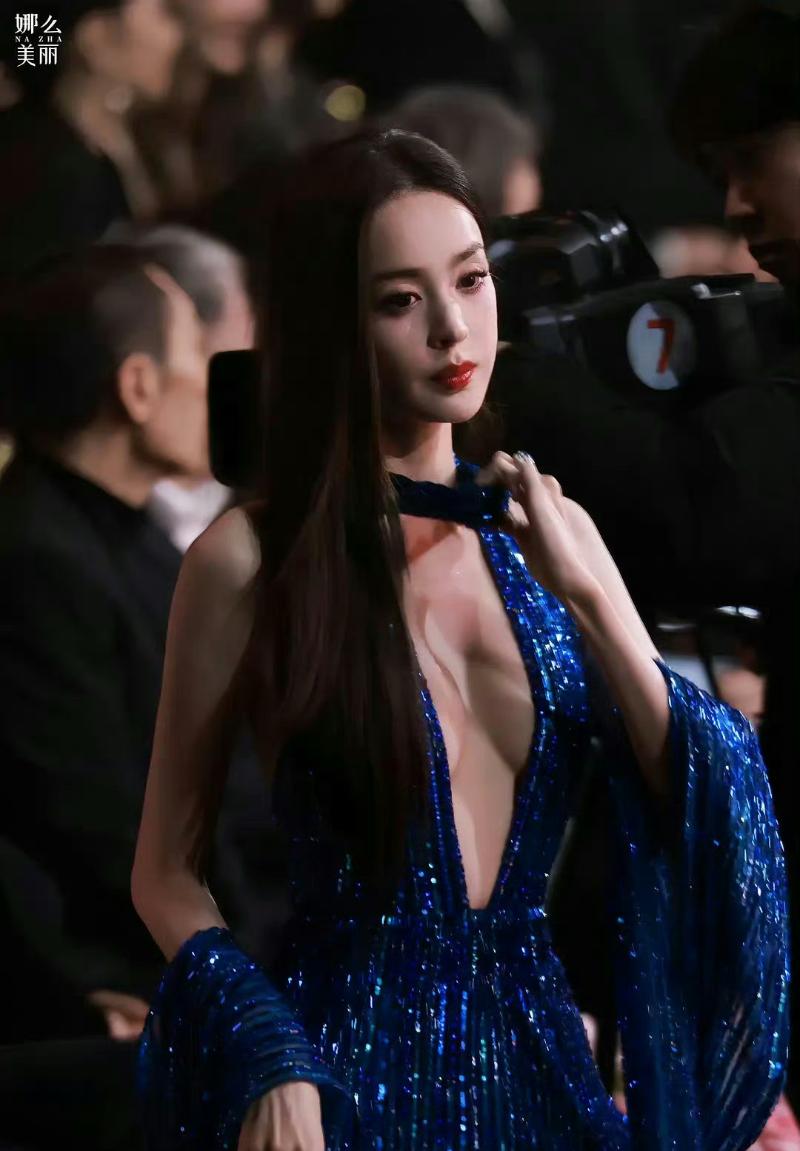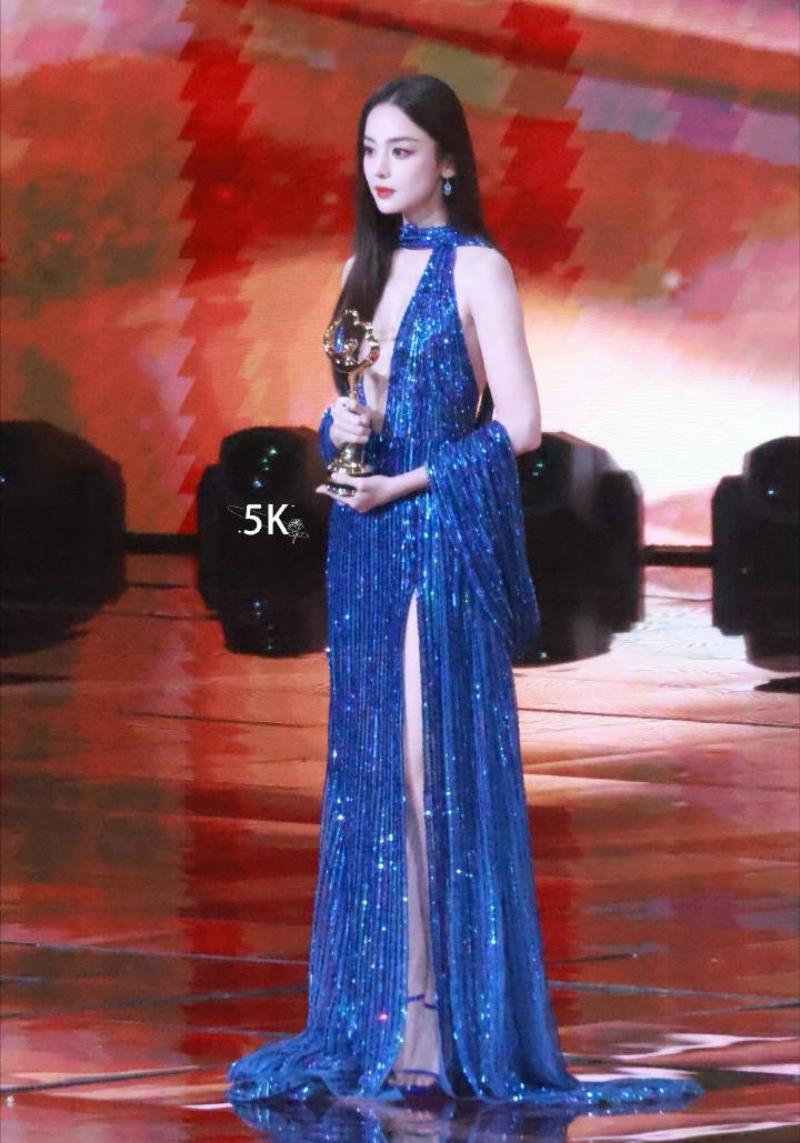 而娜扎同樣爆了一個熱搜詞,那就是「娜扎 選美小姐」。但事實上,相比起紅毯上的死亡芭比粉,娜扎在內場穿的藍色亮片高叉禮服,在視覺上更震撼,尤其前面的深V真的…也太性感!