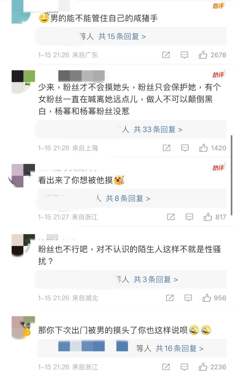 沒想到人群中突然超貼近楊冪的陌生男人,突然伸出手摸了大冪冪的頭(⊙o⊙)…楊冪驚覺之後,馬上回頭表示:「別摸我的頭,謝謝。」