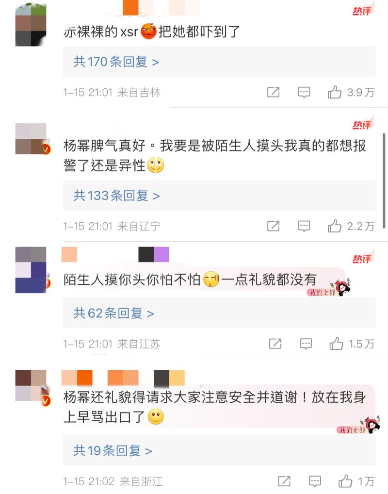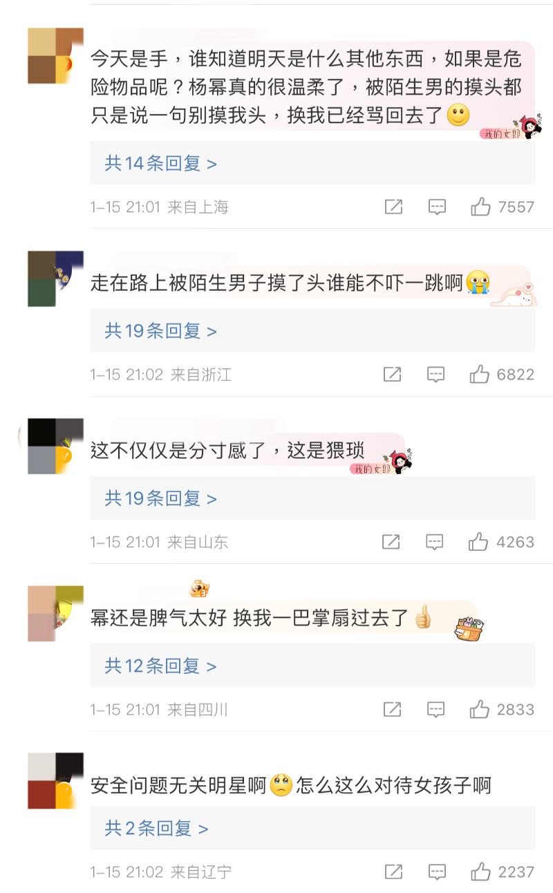 沒想到人群中突然超貼近楊冪的陌生男人,突然伸出手摸了大冪冪的頭(⊙o⊙)…楊冪驚覺之後,馬上回頭表示:「別摸我的頭,謝謝。」