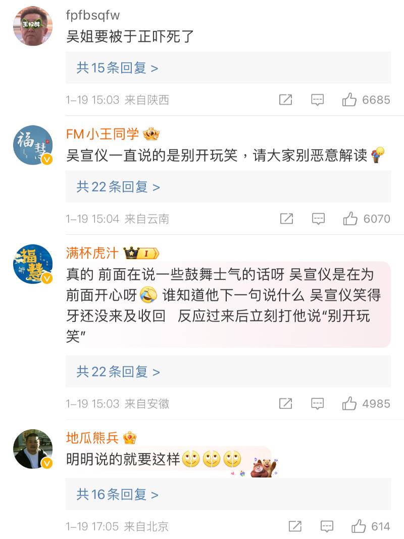 隨後,于正在直播中幫吳宣儀正名,表示她的確是在圓場,雖然但是,還是很多網友不相信👇