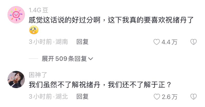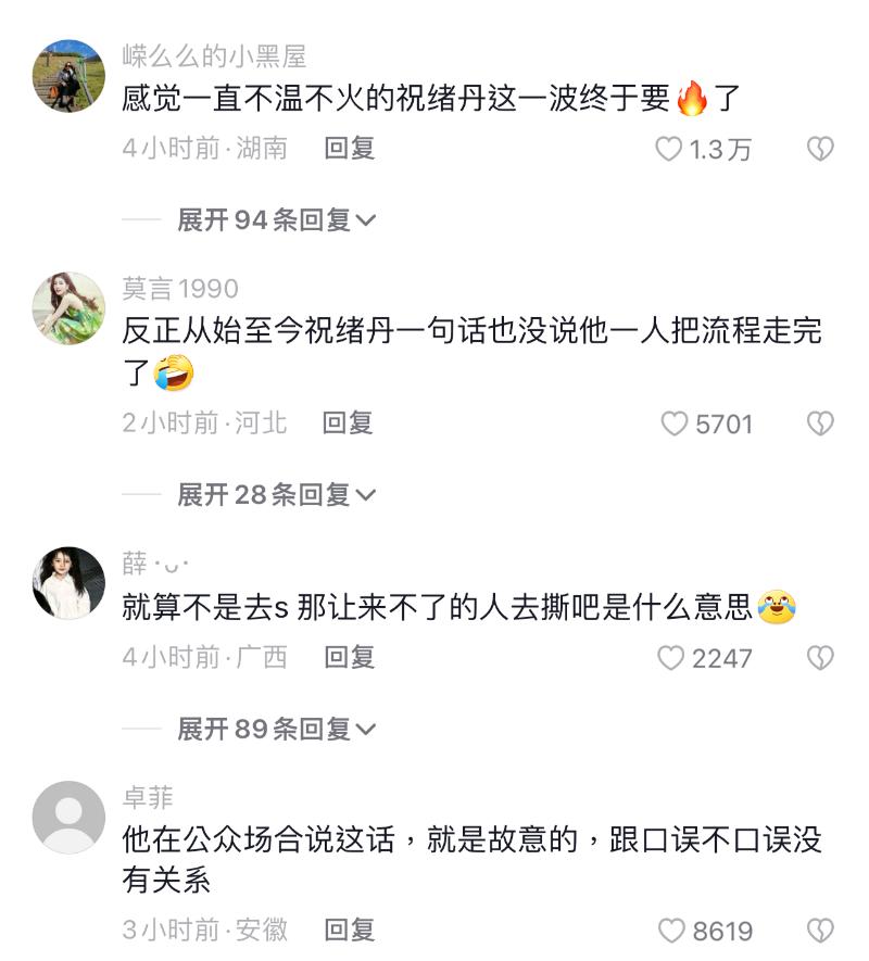 最後,因為這次于正公然開撕祝緒丹,最大的受益人,絕對就是祝緒丹無誤,她的評論區都好正向啊!