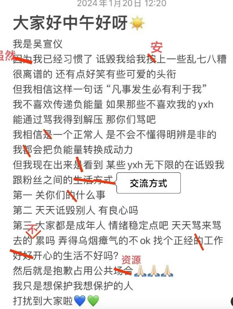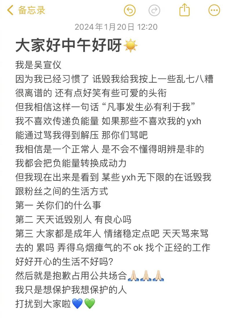 隨著上了熱搜第一,吳宣儀發長文怒怼:「某些yxh(營銷號)無下限地在诋毀我跟粉絲之間的生活方式」,「關你們什麽事?天天诋毀別人有良心嗎?」