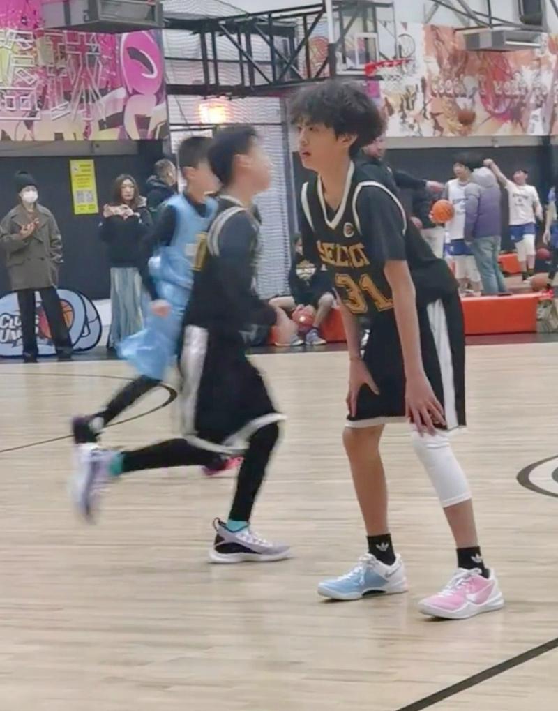 重點來啦~~~有網友拍到等等在籃球場上的照片,只見今年13歲的等等燙了一頭捲髮,在籃球場上運球、投籃,看起來十分有活力!