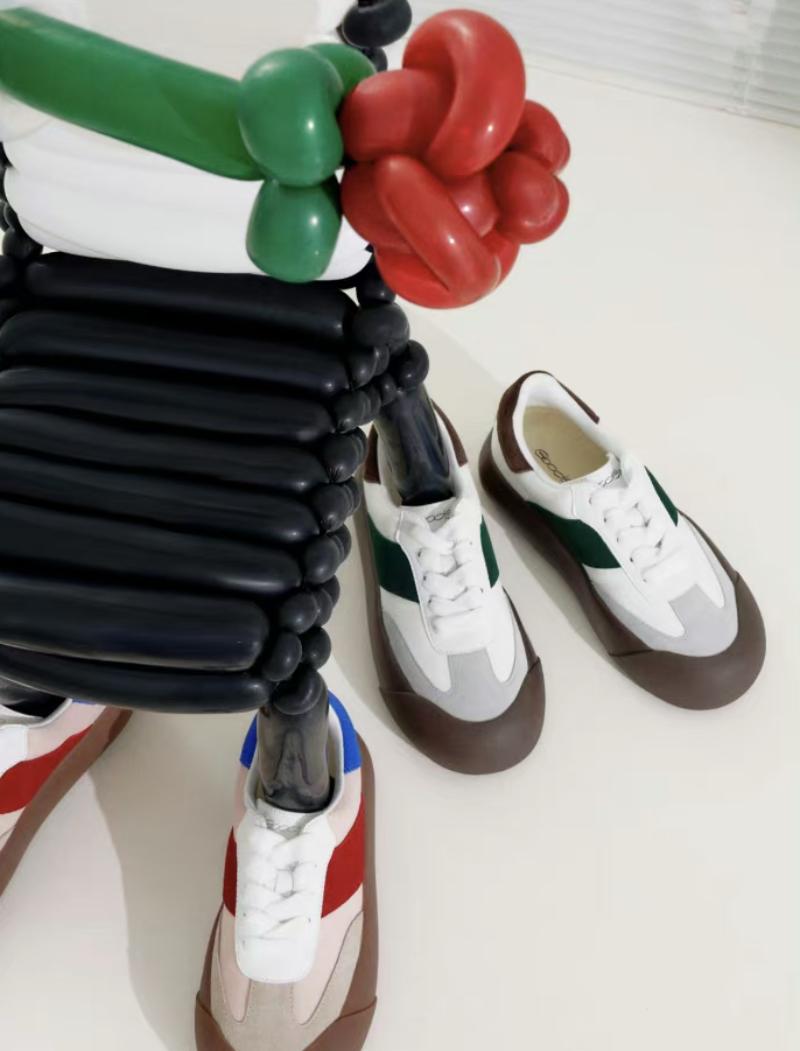 而當中GoodBai最出圈的單品,就是這雙圓頭圓腦的全新”蓬蓬鞋“。這雙鞋以上世紀70-80年代德訓鞋為藍本,打破經典德訓鞋的優雅精巧外觀,通過加寬的鞋楦及加厚的鞋底,打造圓鈍可愛的外形。