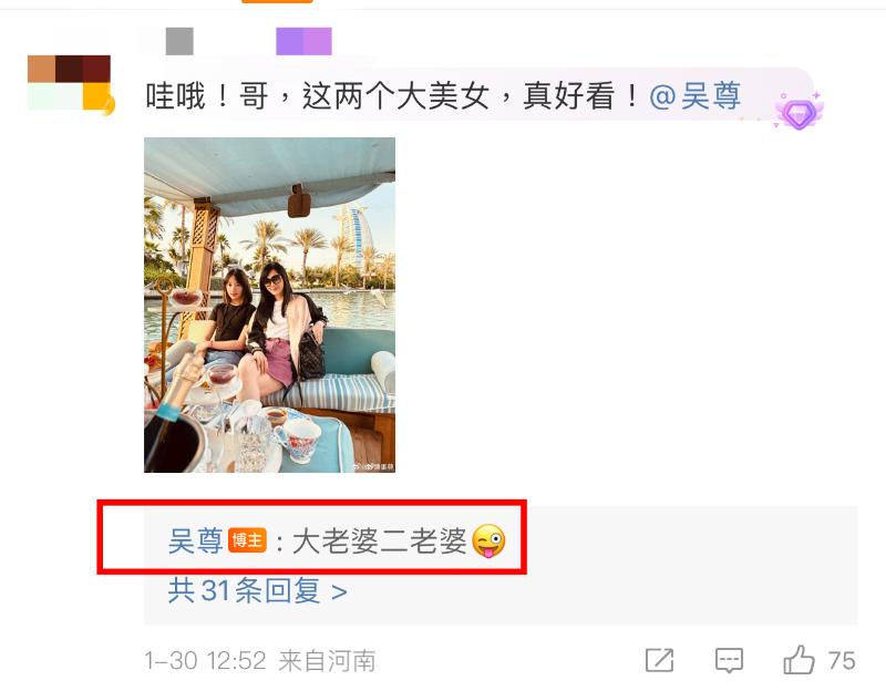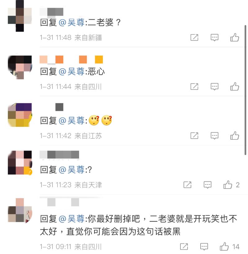 被罵慘了!吳尊叫女兒Nei Nei「二老婆」!評論區直接大翻車…急刪文! 星聞 By 歐巴是我的 On Jan 31, 2024 Share 就是說,是吳尊太不敏感,還是網友過度審判了呢?是噠,吳尊因為一句話,不小心引來全網罵了! 原來是吳尊在微博分享了全家去迪拜旅遊的照片👇 評論區就有網友留言,稱讚吳尊老婆和Nei Nei是兩個大美女~結果沒想到吳尊回應:「大老婆二老婆」 是噠,就是這句話引起網友不適,紛紛下場開罵,認為這麼稱呼自己女兒太不恰當👇 在引起熱議之後,吳尊緊急刪除了這個評論…你覺得,是網友過度敏感了嗎? 圖來源:部分照片取自網絡,若侵權請告知 Share