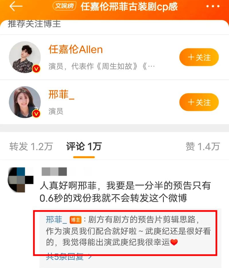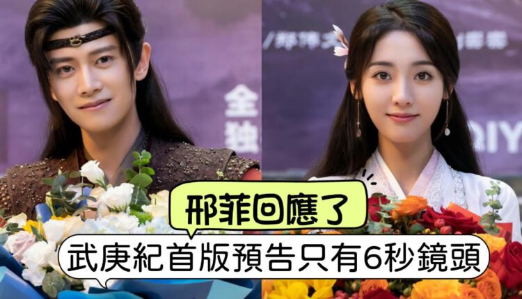 隨後邢菲救場,續《烏鴉小姐與蜥蜴先生》之後,二搭任嘉倫出演《武庚紀》!但沒想到這麼重要的首發預告,居然只有…不足一秒的鏡頭!