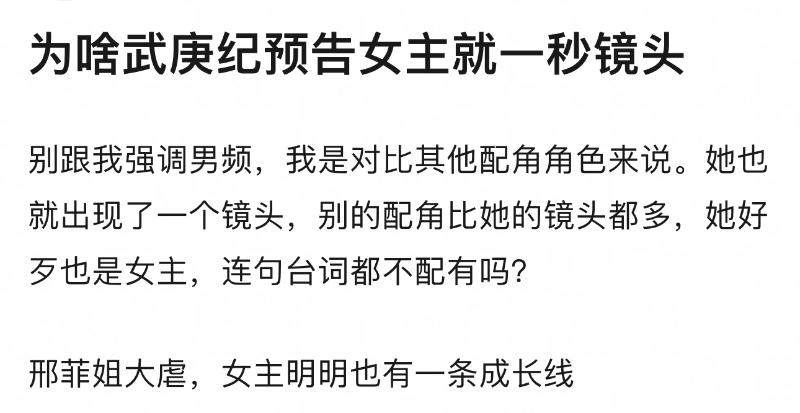 雖然但是,這段時長1分鐘25秒的預告中,身為女主的邢菲居然只有不足一秒的鏡頭,引起了不少爭議👇