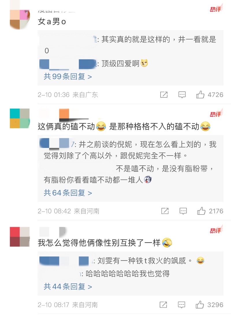就是說,雖然這兩對都在撒狗糧,但評論區真的很極端⋯劉雯和井柏然的評論區都在說嗑不動、女強男弱即視感👇🏻
