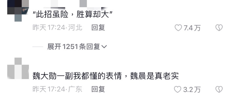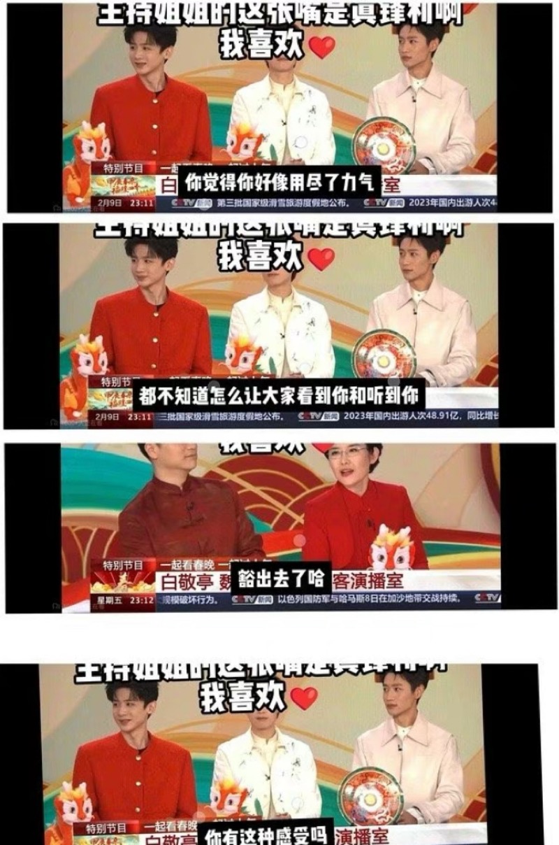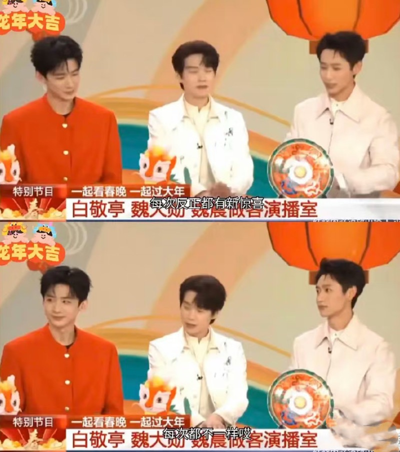 之後央視的採訪也被網友反覆解讀,主持人王寧看似無意實則意味深長地說:「白敬亭第一次上春晚,覺得舞台特別大,舞台特別空,用盡了力氣都不知道怎麼才能讓觀眾看到自己。」說完這句話後,魏大勳和魏晨都忍不住笑了。