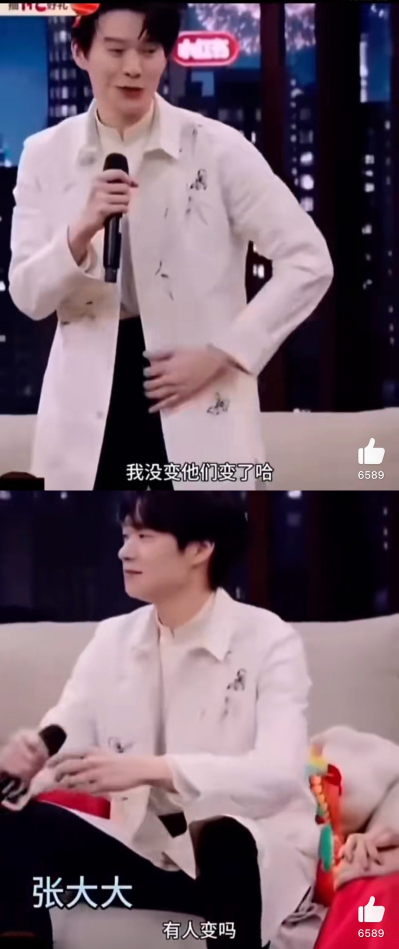 在春晚後,白敬亭開了直播,當時也有粉絲問為什麼上春晚穿黑色?結果小白略過不答👇🏻