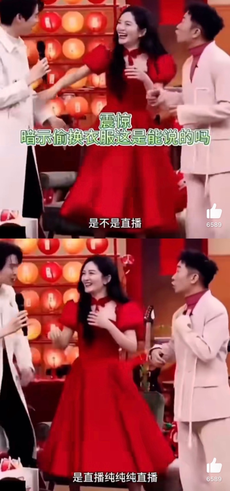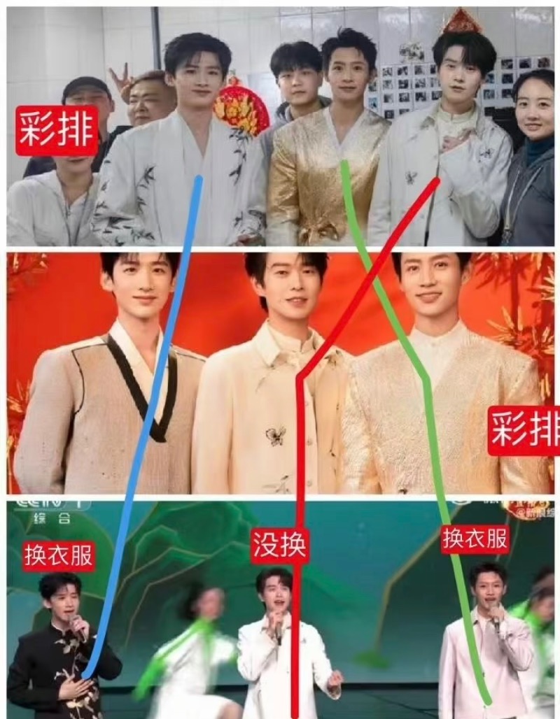 最絕的是,主持人謝娜在直播中直接問了表演的這三位,有沒有換了服裝?