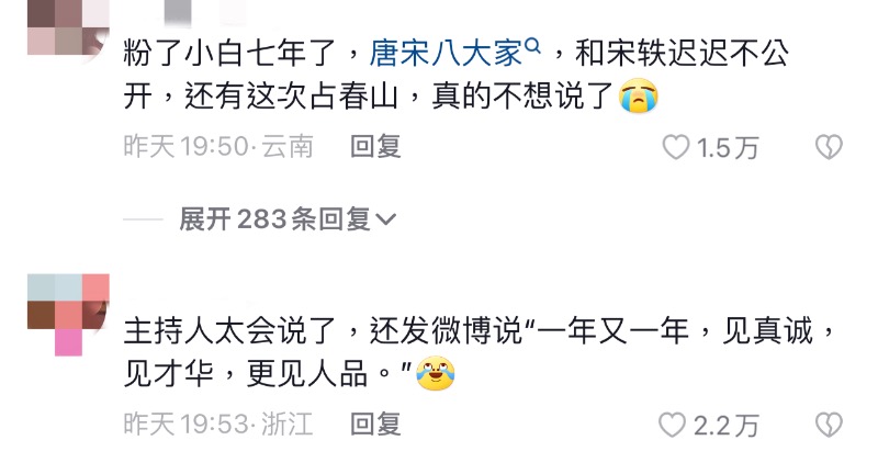 就是說,沒想到第一次上春晚居然引發這麼大爭議,原本上了春晚帶來的路人緣,可以說全面崩壞,而白敬亭方至今沒有回應。