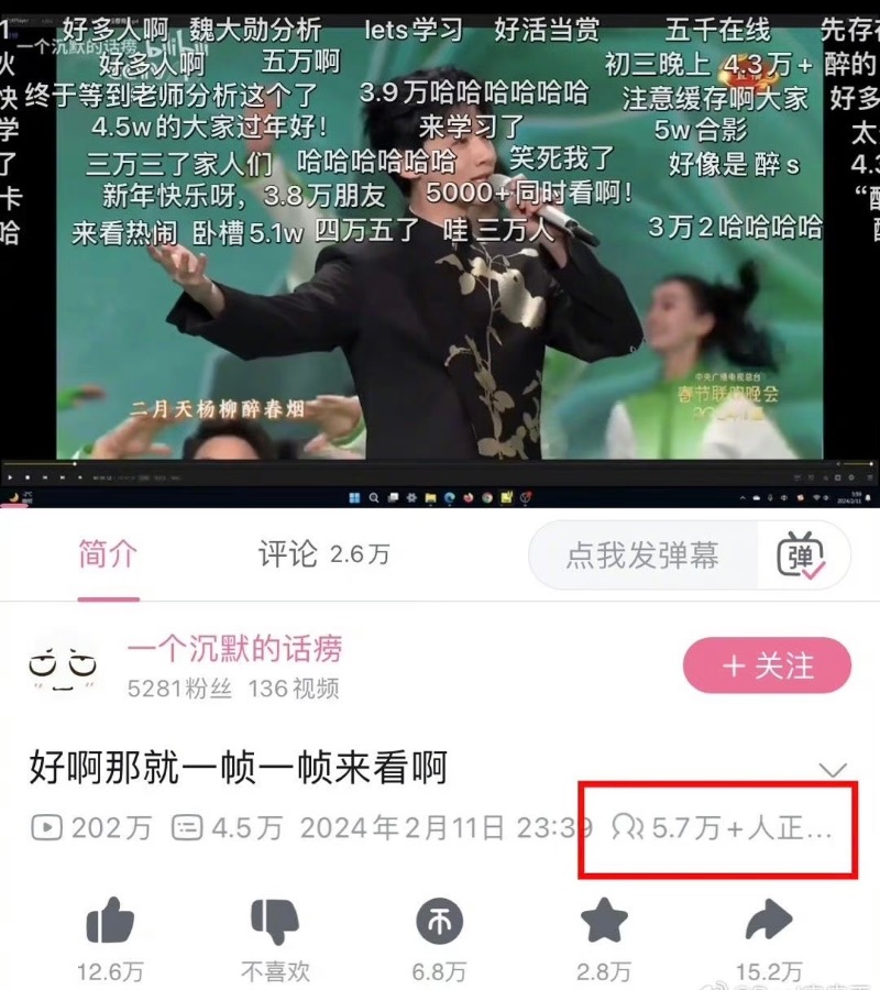 甚至在凌晨還有同時5.7萬人在線觀看!