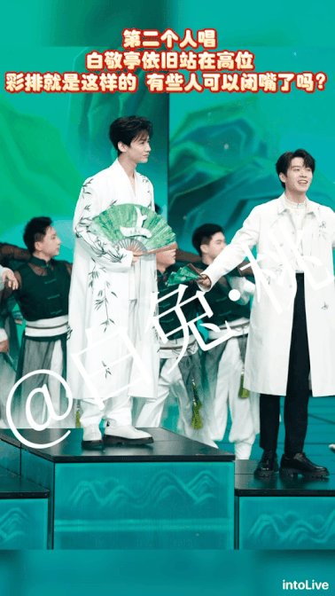節目播出之後,有網友發現白敬亭彩排和上場時的衣服不一樣。雖然魏晨也換了衣服,但依然還是同色系的白色,因此顯得唯一深色系的白敬亭特別突出,和整體舞台不協調。