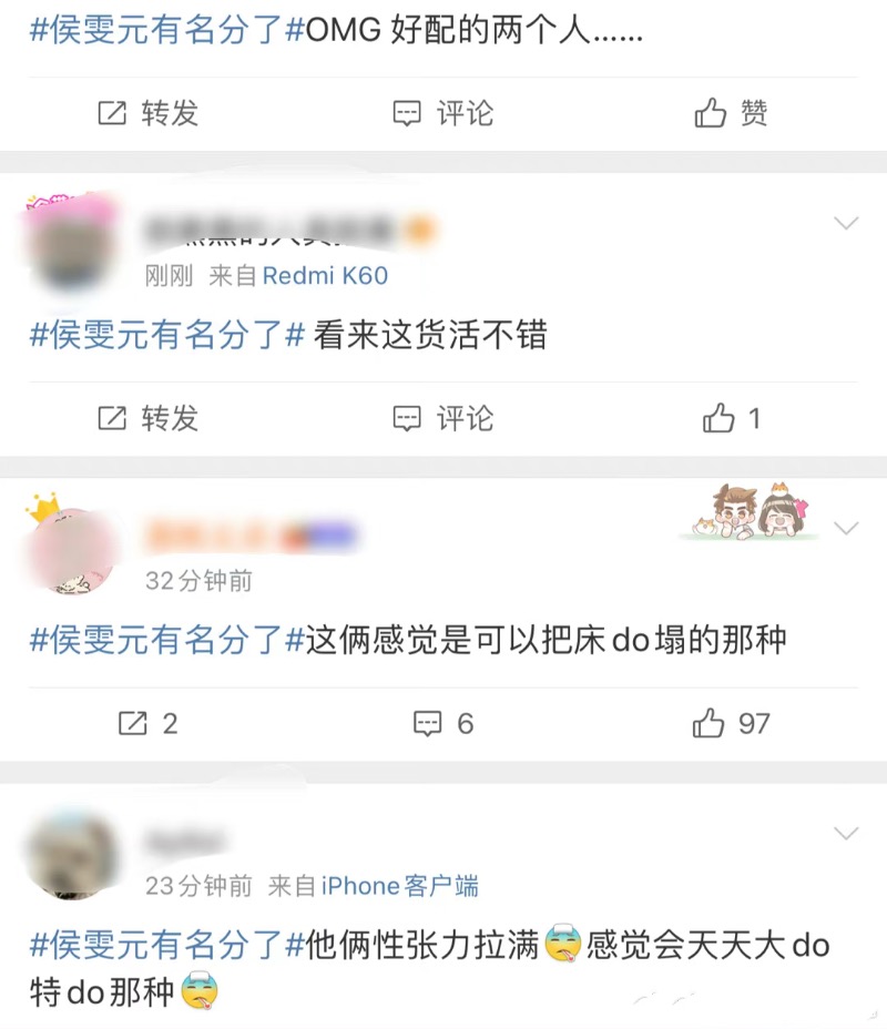 就是說,還有了「侯雯元有名份了」的熱搜,而相關廣場都是虎狼之詞🫣😳🤣